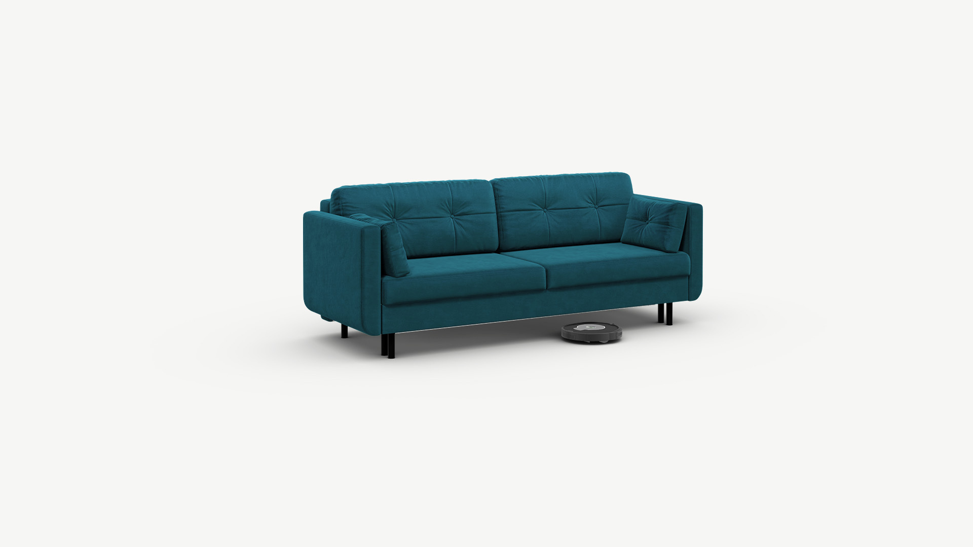 Благодаря высоким конусовидным опорам под диваном проходит робот-пылесос и легко проводится влажная уборка, что обеспечивает чистоту и порядок в доме. Цвет опор подбирается дизайнерами с учетом фактуры и цвета обивочного материала, а также последних модных тенденций.