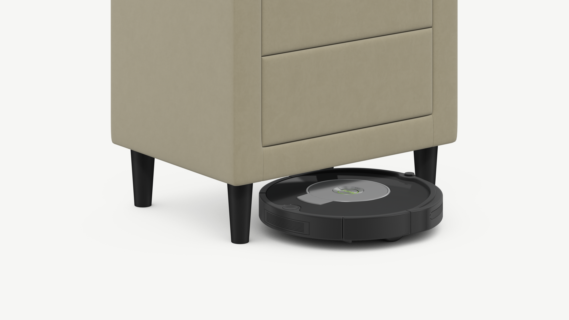 Под тумбой с высокими опорами проходит робот-пылесос и легко проводится влажная уборка, что обеспечивает чистоту и порядок в доме.