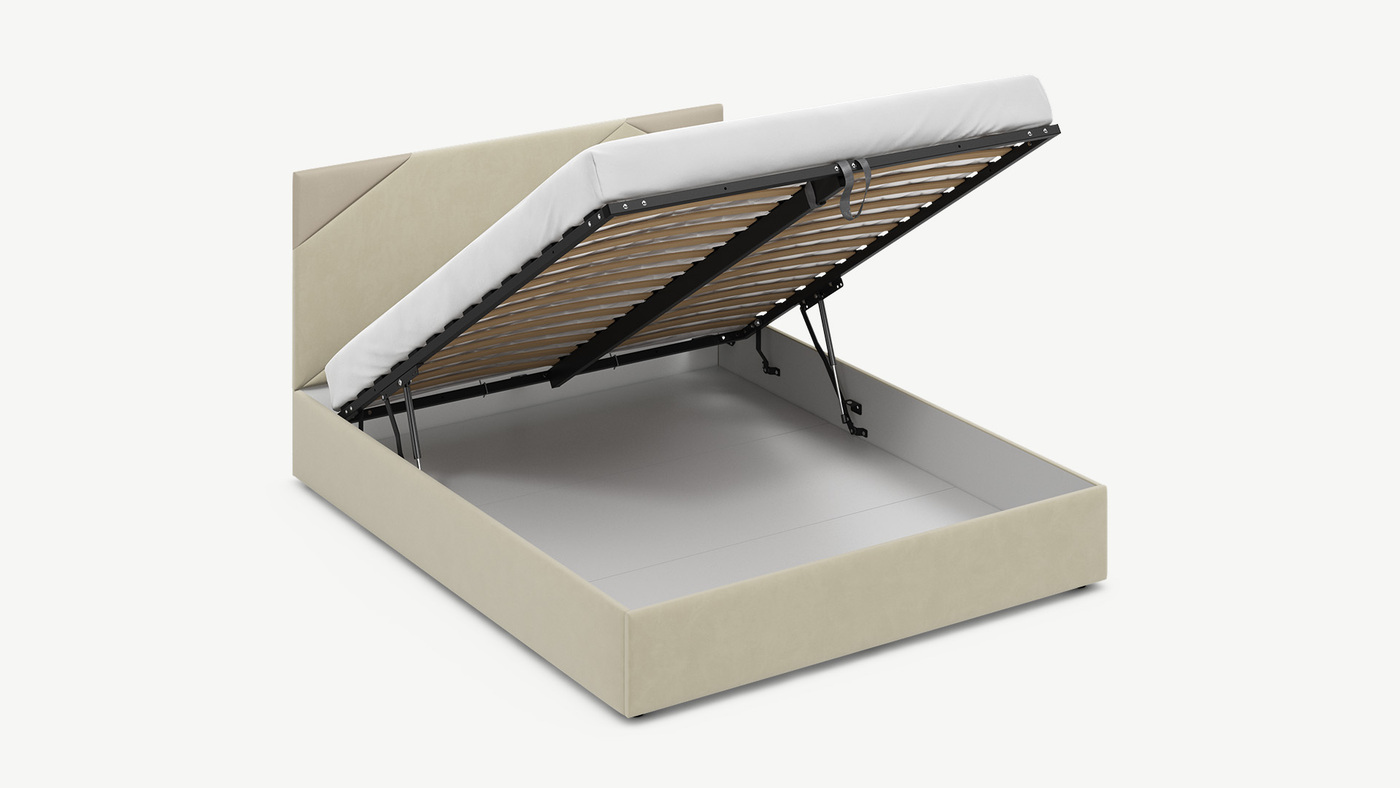 • Скрытая под основанием вместительная емкость без внутренних перегородок позволяет использовать всю площадь подкроватного пространства для хранения вещей.