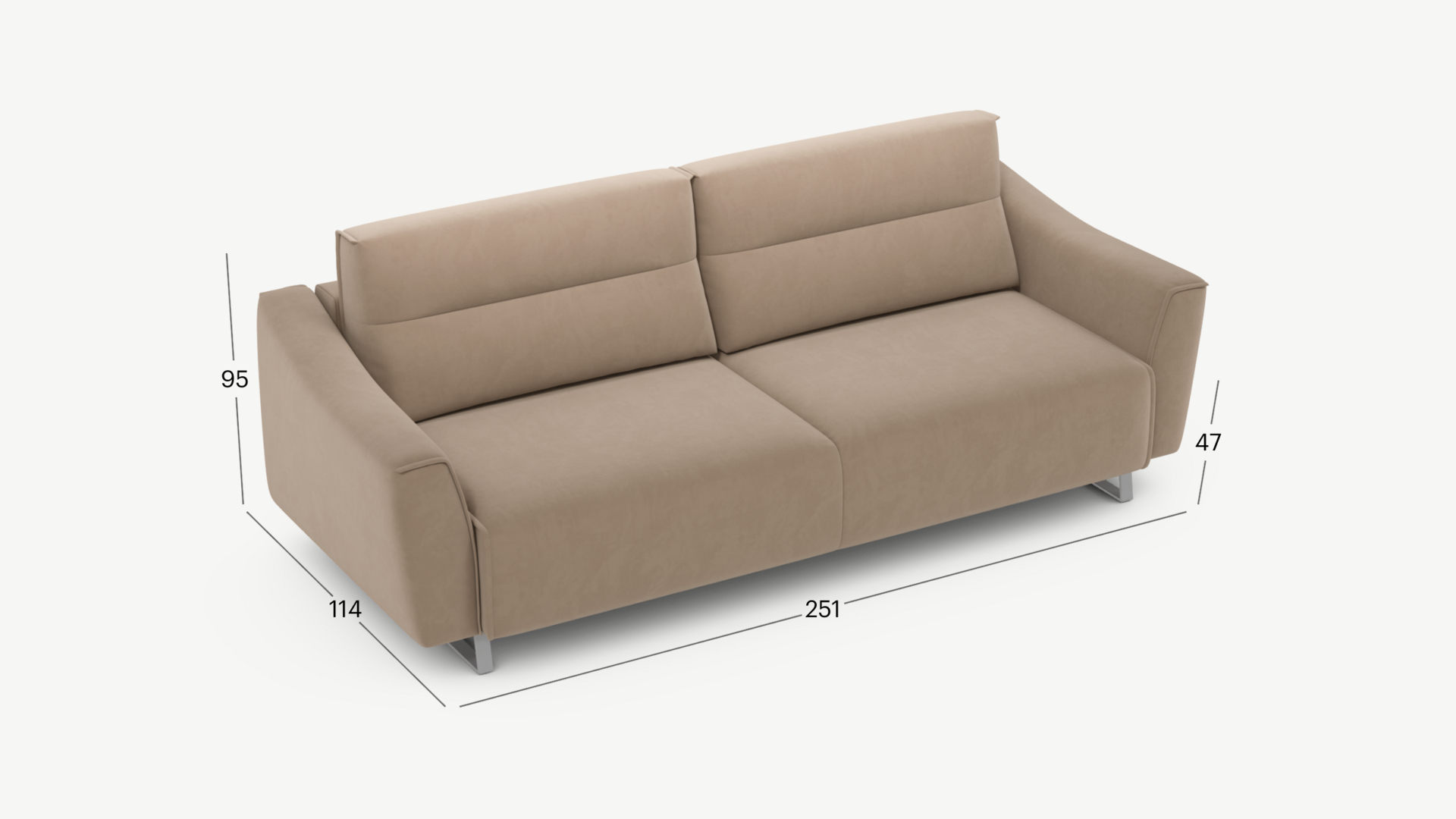 Механизм трансформации «Пантограф» подходит для ежедневного использования. Позволяет легко раскладывать и складывать диван, обеспечивая минимальный контакт дополнительных опор с напольным покрытием. Диван стоит на трапециевидных опорах, в то время как дополнительные остаются скрытыми, появляясь плавно и бесшумно в единственно нужный момент — при трансформации дивана в кровать.