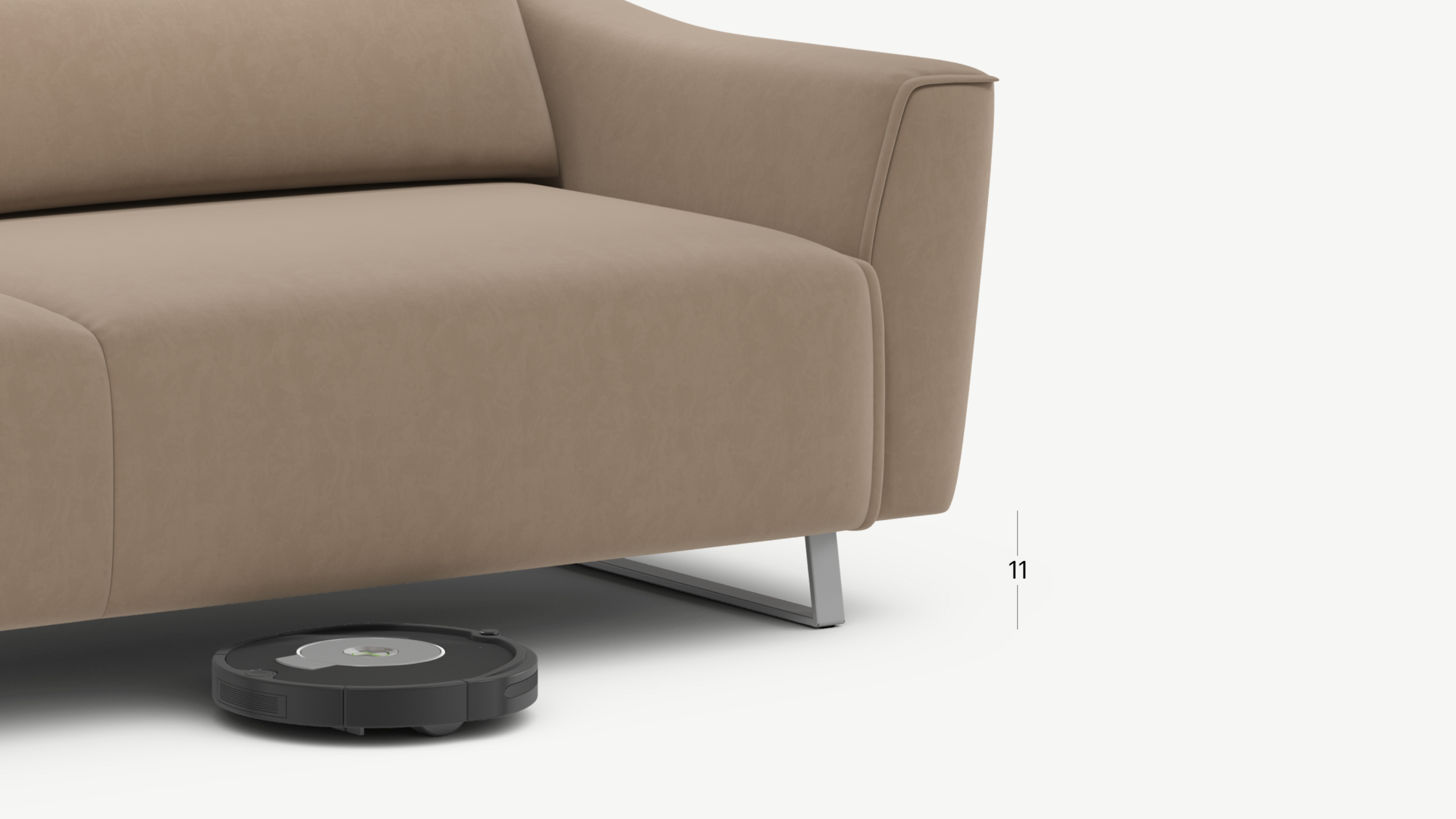 Благодаря высоким трапециевидным опорам под диваном проходит робот-пылесос и легко проводится влажная уборка, что поможет обеспечить чистоту и порядок в доме.