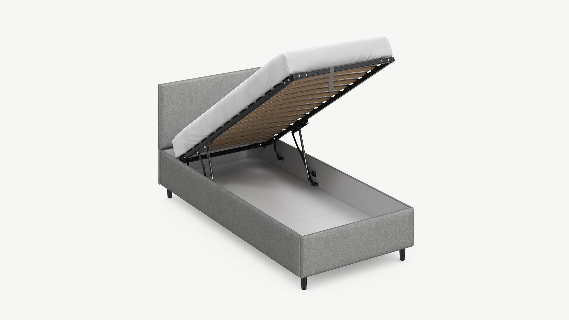 • Регулируемый подъемный механизм имеет два положения установки газовых амортизаторов в зависимости от веса матраса. Это дает возможность оптимально подстраивать угол подъема основания, а также плавно и бесшумно поднимать и опускать спальное место.