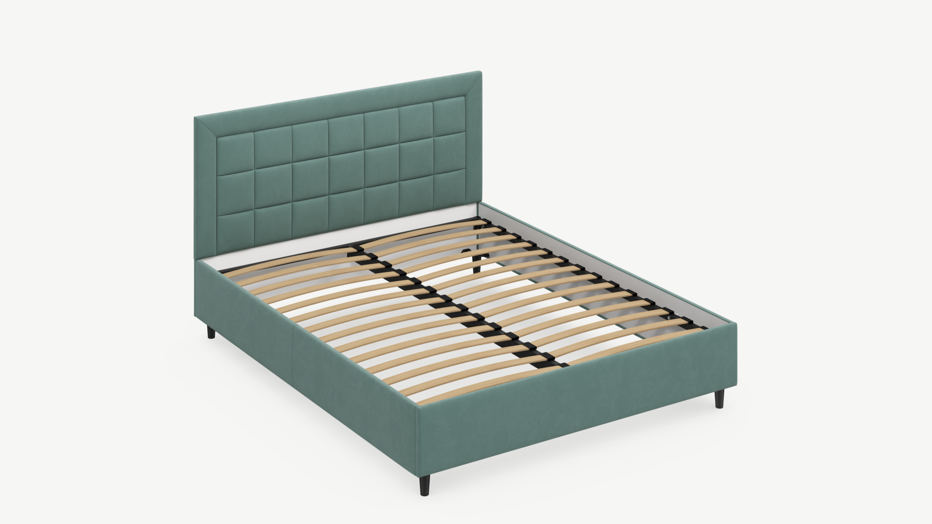 Рама, изголовье и царги надежно крепятся между собой, обеспечивая прочность и устойчивость кровати.