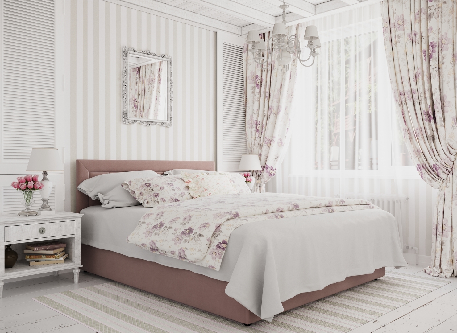 Создать гармоничный интерьер и завершить образ спальни помогут дополнительные аксессуары, например: тумбы, банкетки, подушки.