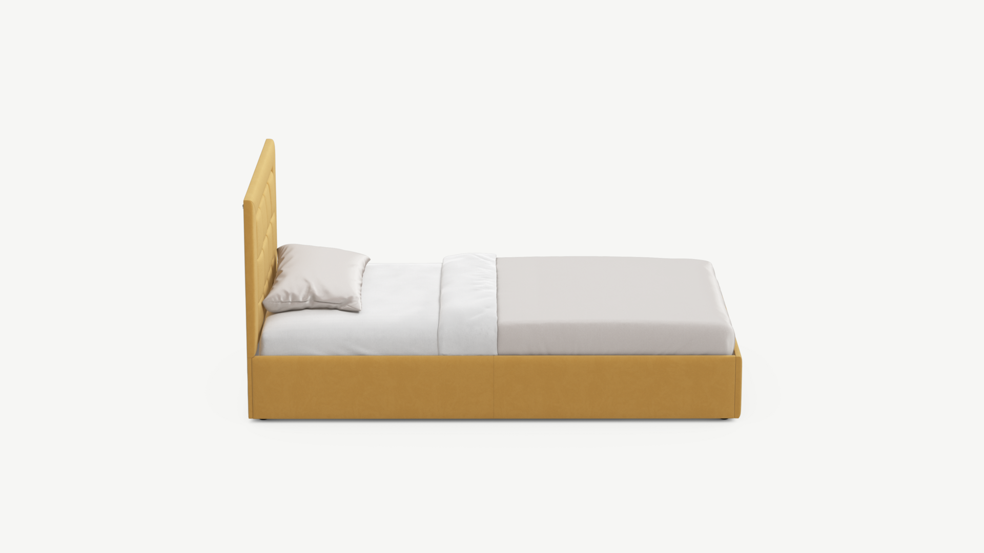 Изголовье декорировано рельефным рисунком стежки в крупный квадрат, получившим особую фактуру за счет глубины шва.