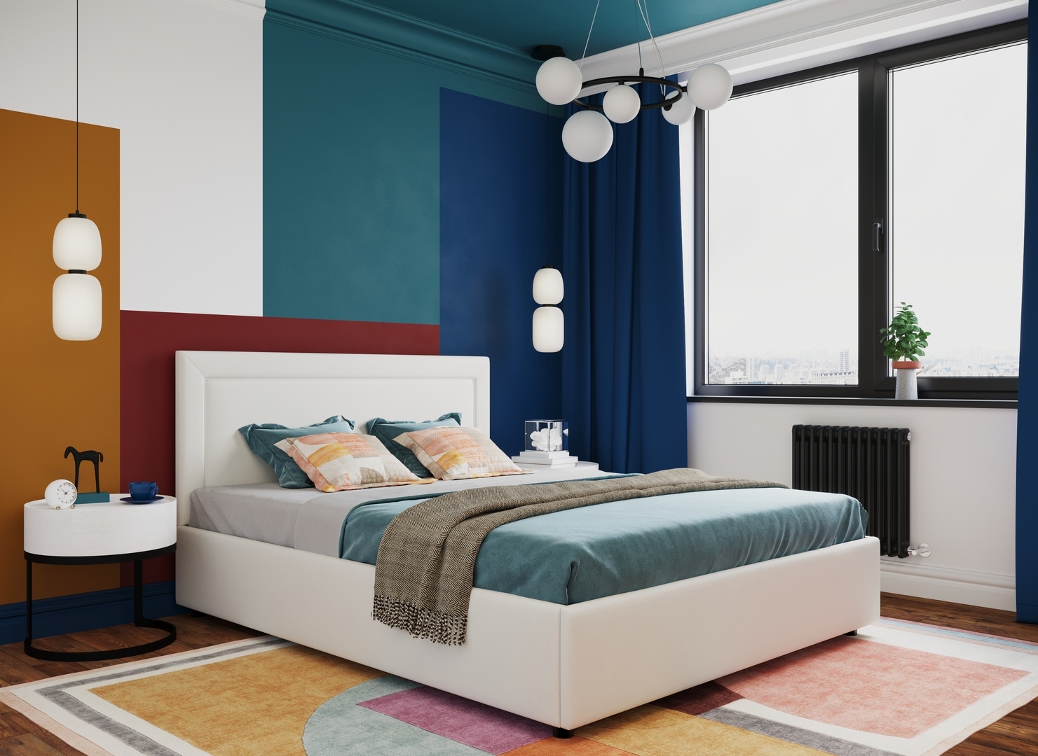 Создать гармоничный интерьер и завершить образ спальни помогут дополнительные аксессуары, например: тумбы, банкетки, подушки.
