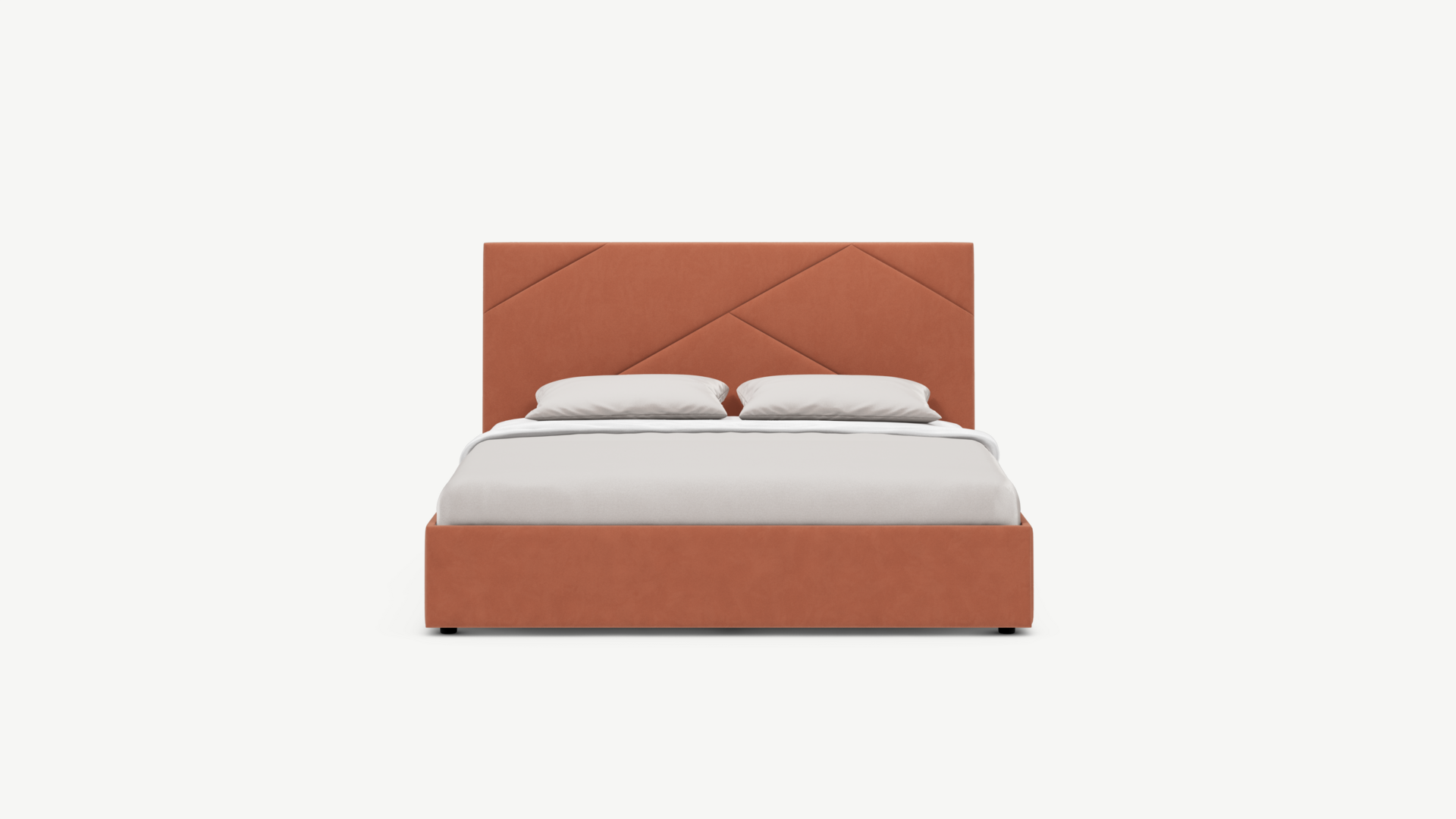MOON FAMILY 1257 привлекает внимание оригинальным исполнением: широкие полосы ткани эффектно пересекают периметр изголовья, создавая на нем графический орнамент. Лаконичные формы объемных царг создают единый гармоничный образ и фокусируют внимание на центральном текстурном элементе кровати.