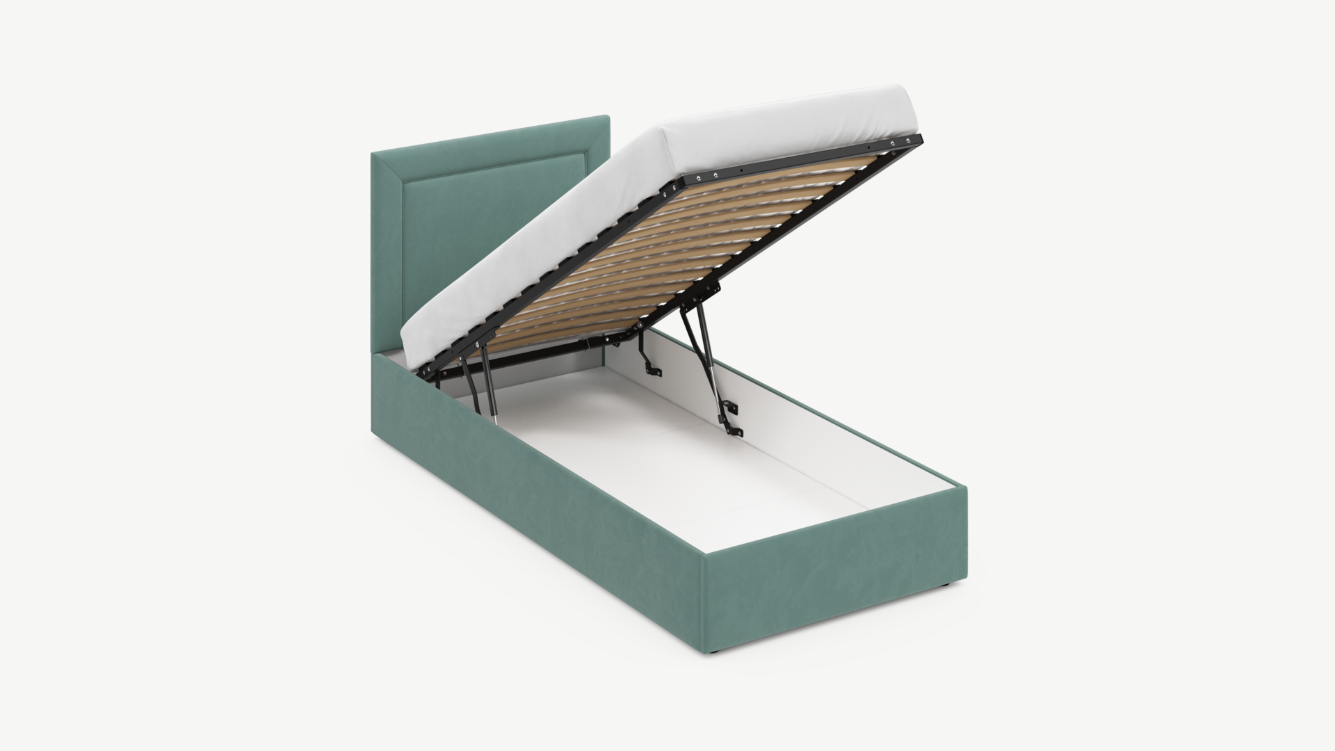 Регулируемый подъемный механизм с газовыми амортизаторами позволяет плавно и бесшумно поднимать и опускать спальное место.