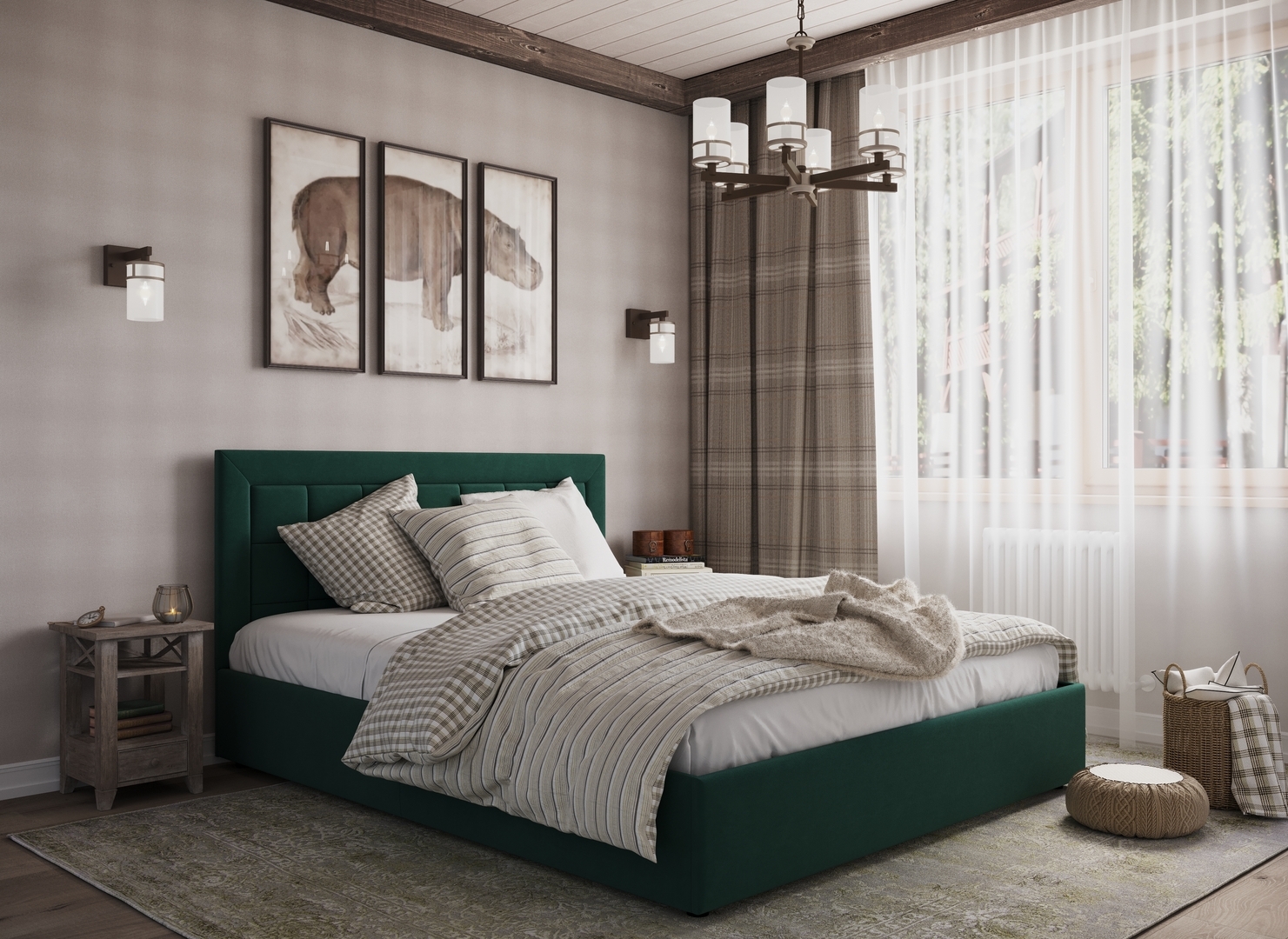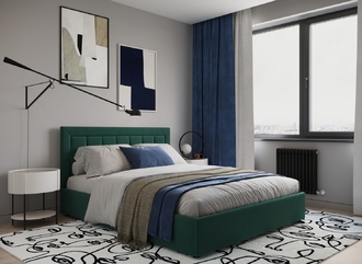 Стежка помещена в центр изголовья и обрамлена, словно картина. Объемные царги становятся гармоничным дополнением образа и завершают цельную фигуру кровати.