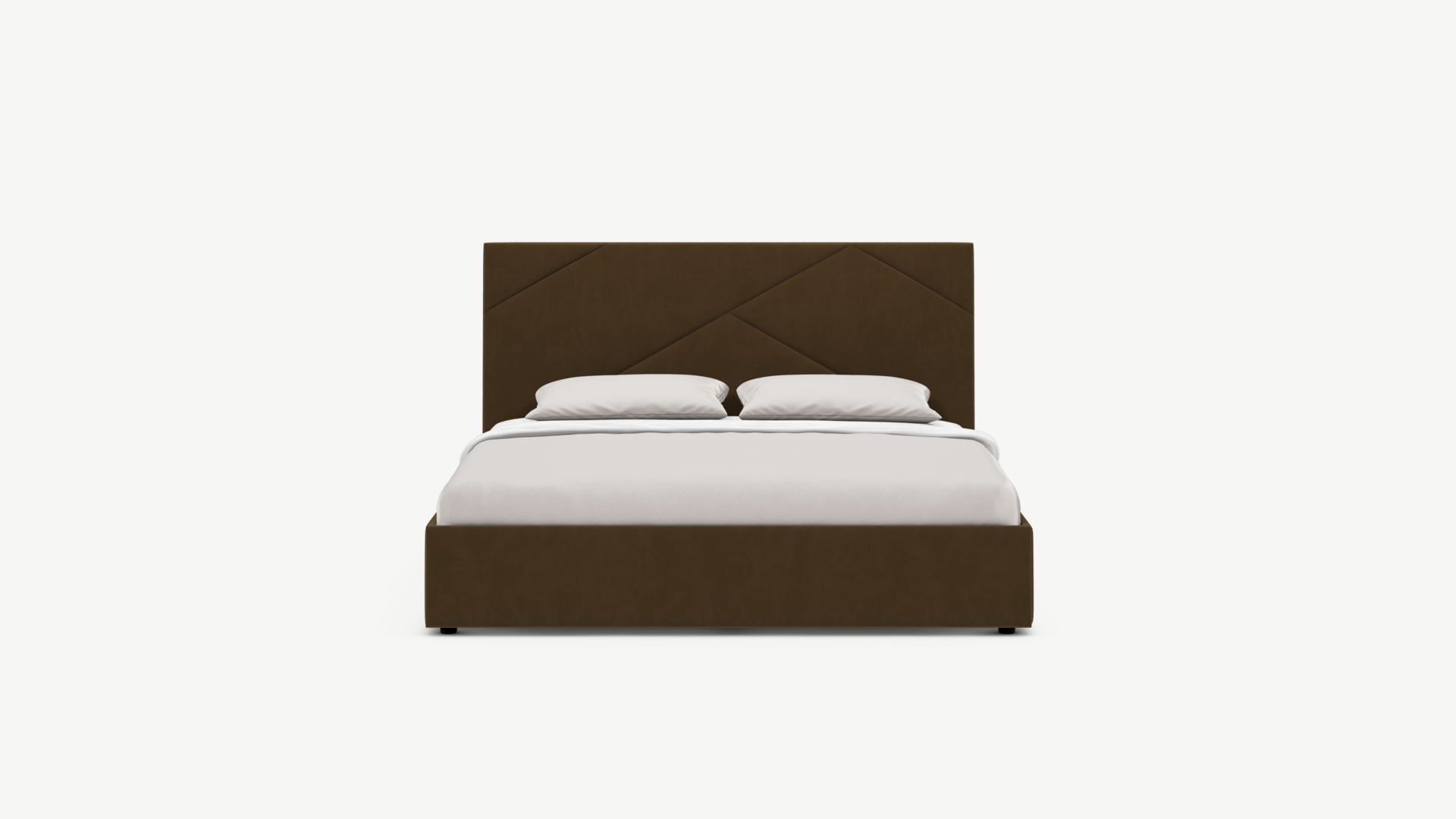 MOON FAMILY 1257 привлекает внимание оригинальным исполнением: широкие полосы ткани эффектно пересекают периметр изголовья, создавая на нем графический орнамент. Лаконичные формы объемных царг создают единый гармоничный образ и фокусируют внимание на центральном текстурном элементе кровати.