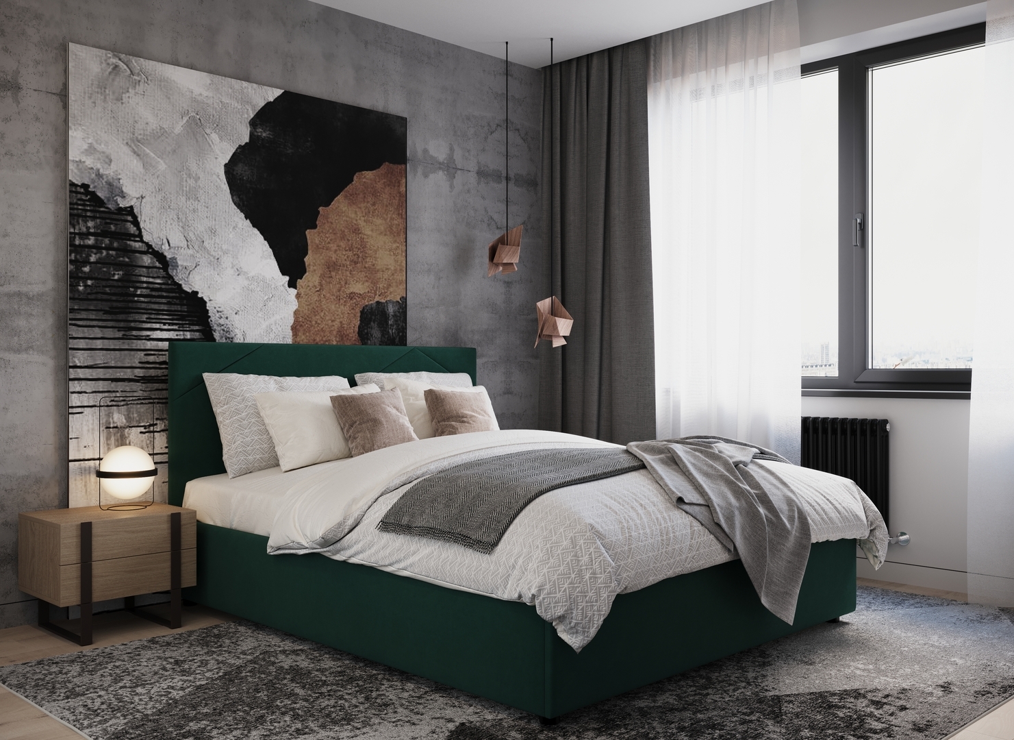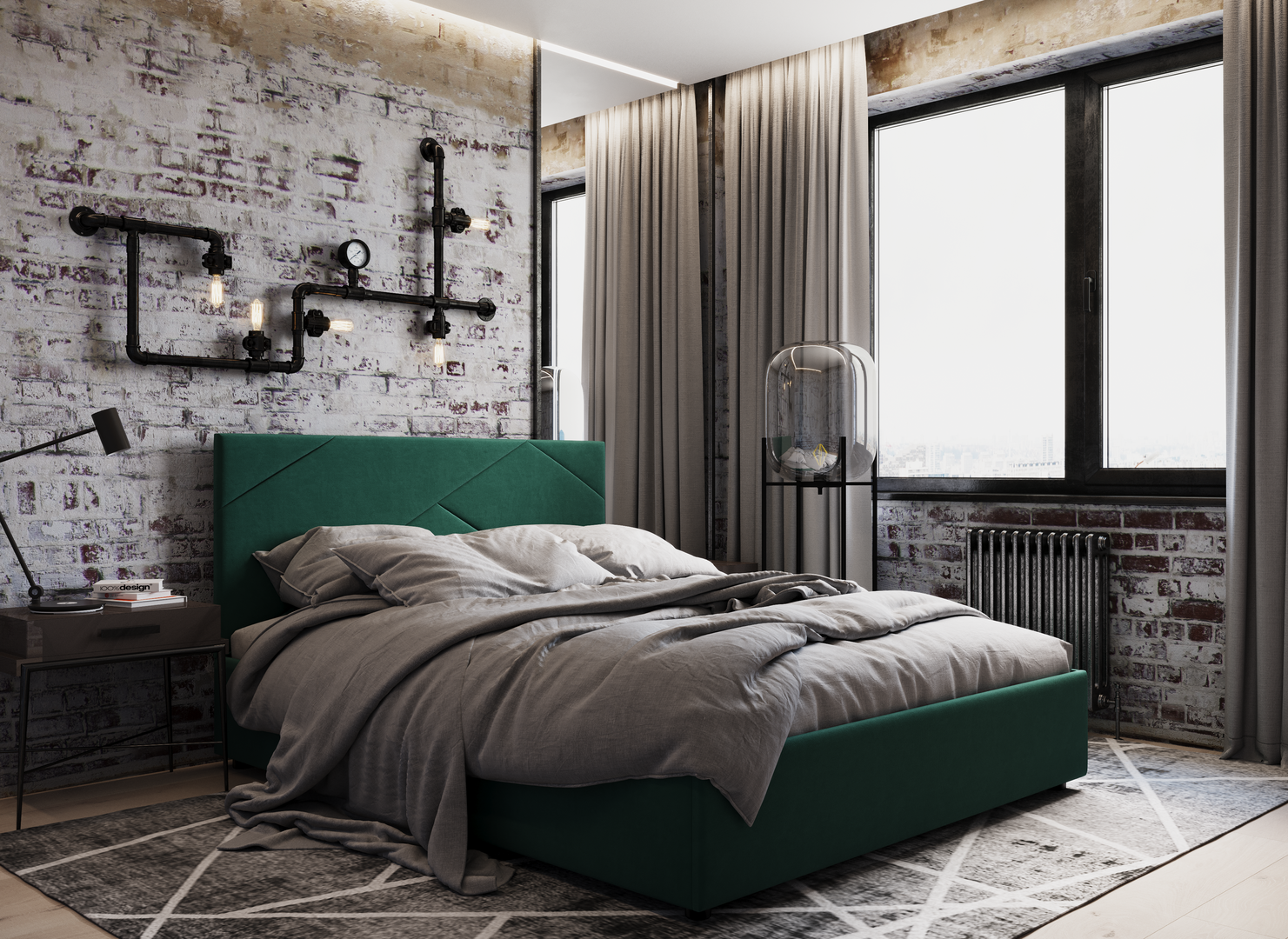 MOON FAMILY 1257 привлекает внимание оригинальным исполнением: широкие полосы ткани эффектно пересекают периметр изголовья, создавая на нем графический орнамент. Лаконичные формы объемных царг создают единый гармоничный образ и фокусируют внимание на центральном текстурном элементе кровати.
