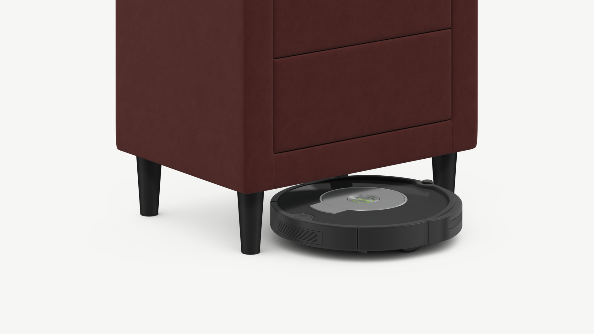 Под тумбой с высокими опорами проходит робот-пылесос и легко проводится влажная уборка, что обеспечивает чистоту и порядок в доме.