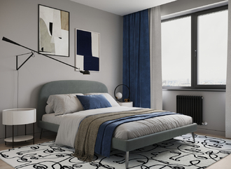 Создать гармоничный интерьер и завершить образ спальни помогут дополнительные аксессуары, например: тумбы, банкетки, подушки.