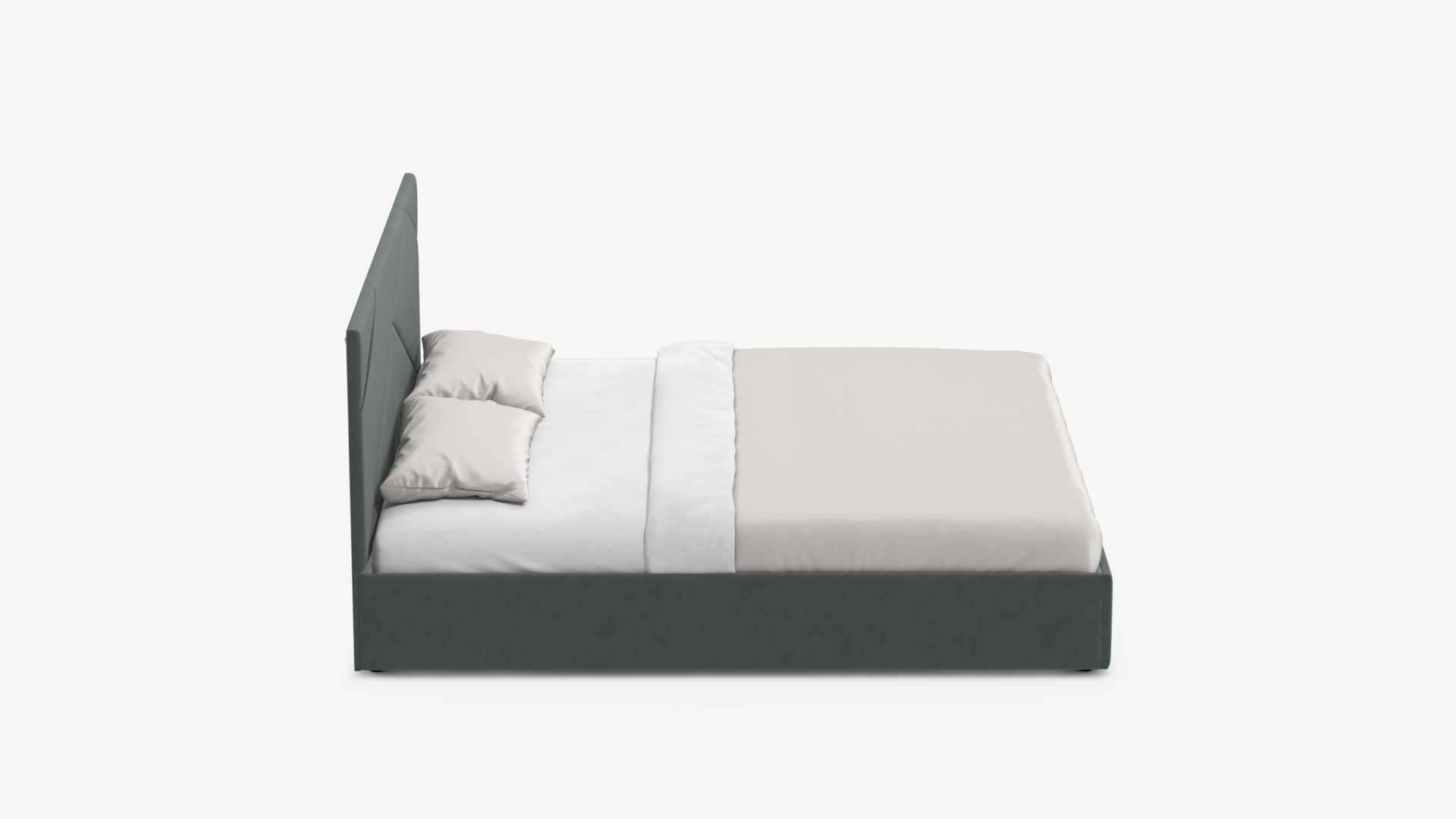 MOON FAMILY 1257 привлекает внимание оригинальным исполнением: широкие полосы ткани эффектно пересекают периметр изголовья, создавая на нем графический орнамент. Лаконичные формы объемных царг создают единый гармоничный образ и фокусируют внимание на центральном текстурном элементе кровати.