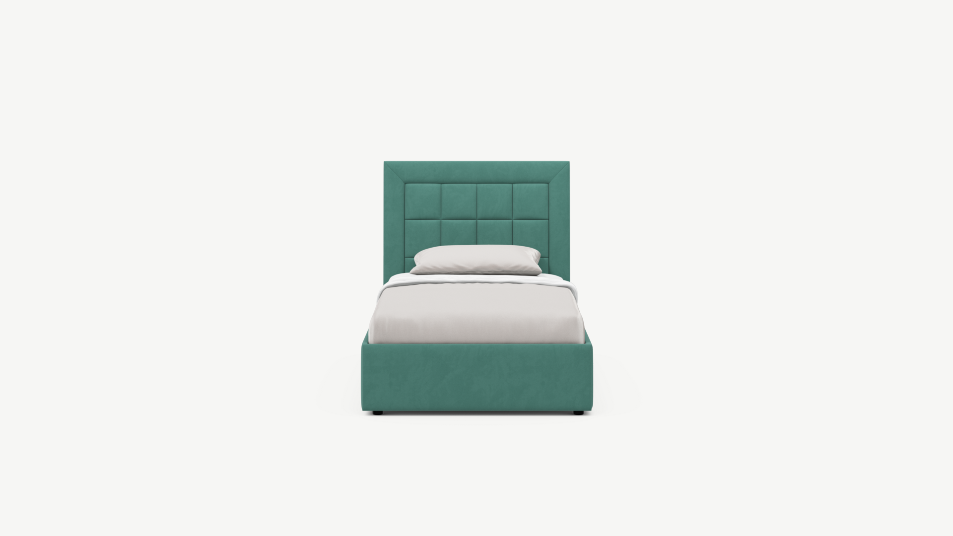 Изголовье декорировано рельефным рисунком стежки в крупный квадрат, получившим особую фактуру за счет глубины шва.