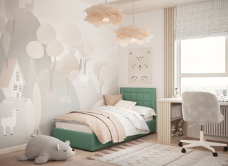 • Скрытая под основанием вместительная емкость без внутренних перегородок позволяет использовать всю площадь подкроватного пространства для хранения вещей.