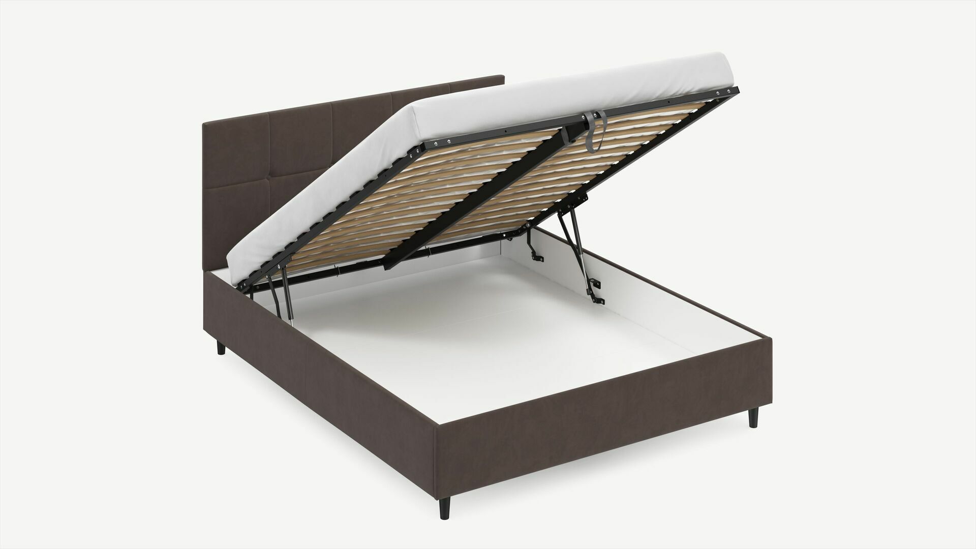 • Скрытая под основанием вместительная емкость без внутренних перегородок позволяет использовать всю площадь подкроватного пространства для хранения вещей.