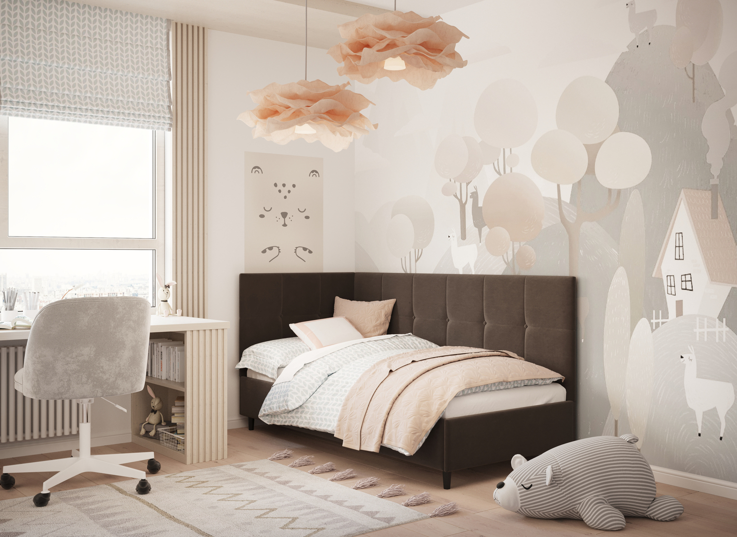 MOON FAMILY 1261 объединяет функциональность и стиль, создавая гармоничное пространство для отдыха и творчества. Кровать доступна в левостороннем и правостороннем исполнении, что позволяет легко адаптировать ее под любые интерьерные особенности.