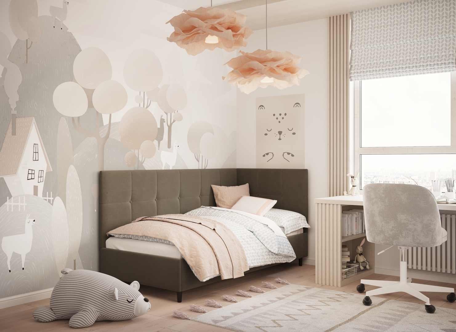 MOON FAMILY 1261 объединяет функциональность и стиль, создавая гармоничное пространство для отдыха и творчества. Кровать доступна в левостороннем и правостороннем исполнении, что позволяет легко адаптировать ее под любые интерьерные особенности.
