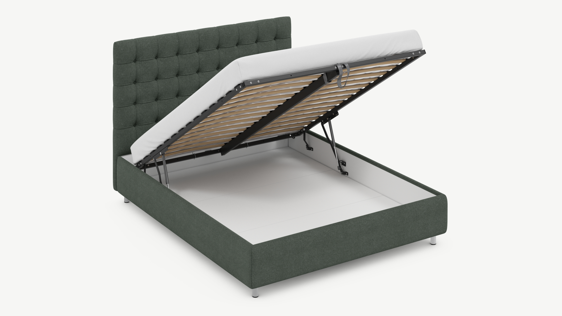 • Скрытая под основанием вместительная емкость без внутренних перегородок позволяет использовать всю площадь подкроватного пространства для хранения вещей.