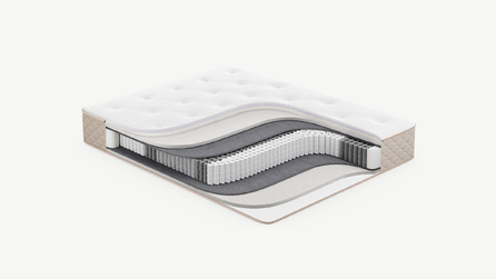 Повышает жесткость и плотность спального места, а также обеспечивает оптимальный воздухообмен благодаря объемной структуре материала. Улучшает эксплуатационные показатели матраса, не давая пружинному блоку механически воздействовать на комфортные слои.