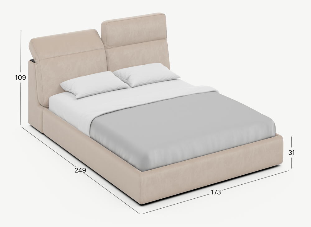 Изголовье подчеркивает эстетику MOON 1107, а также дарит дополнительный комфорт и уют спальному месту. Обратная сторона изголовья выполнена в мебельной ткани и позволяет ставить кровать в центре комнаты для зонирования пространства.