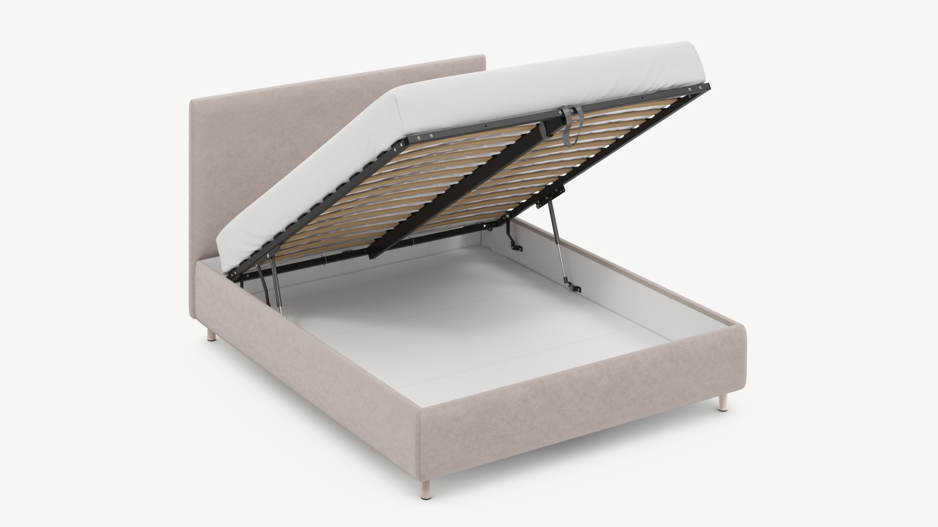 • Скрытая под основанием вместительная емкость без внутренних перегородок позволяет использовать всю площадь подкроватного пространства для хранения вещей.