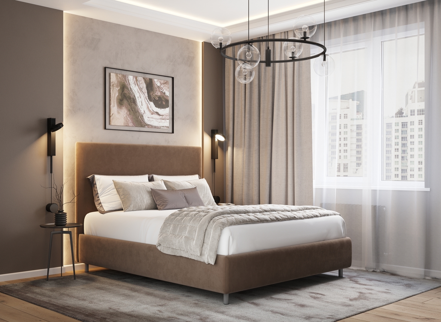 Разнообразие цветовой палитры позволит подобрать желаемый оттенок обивочной ткани. Использование светлых цветов поддержит настроение стиля «Сканди». Приглушенные насыщенные оттенки оформят кровать в стиле «Лофт». Нейтральные оттенки в цвет интерьера обыграют спальню в Современном стиле.